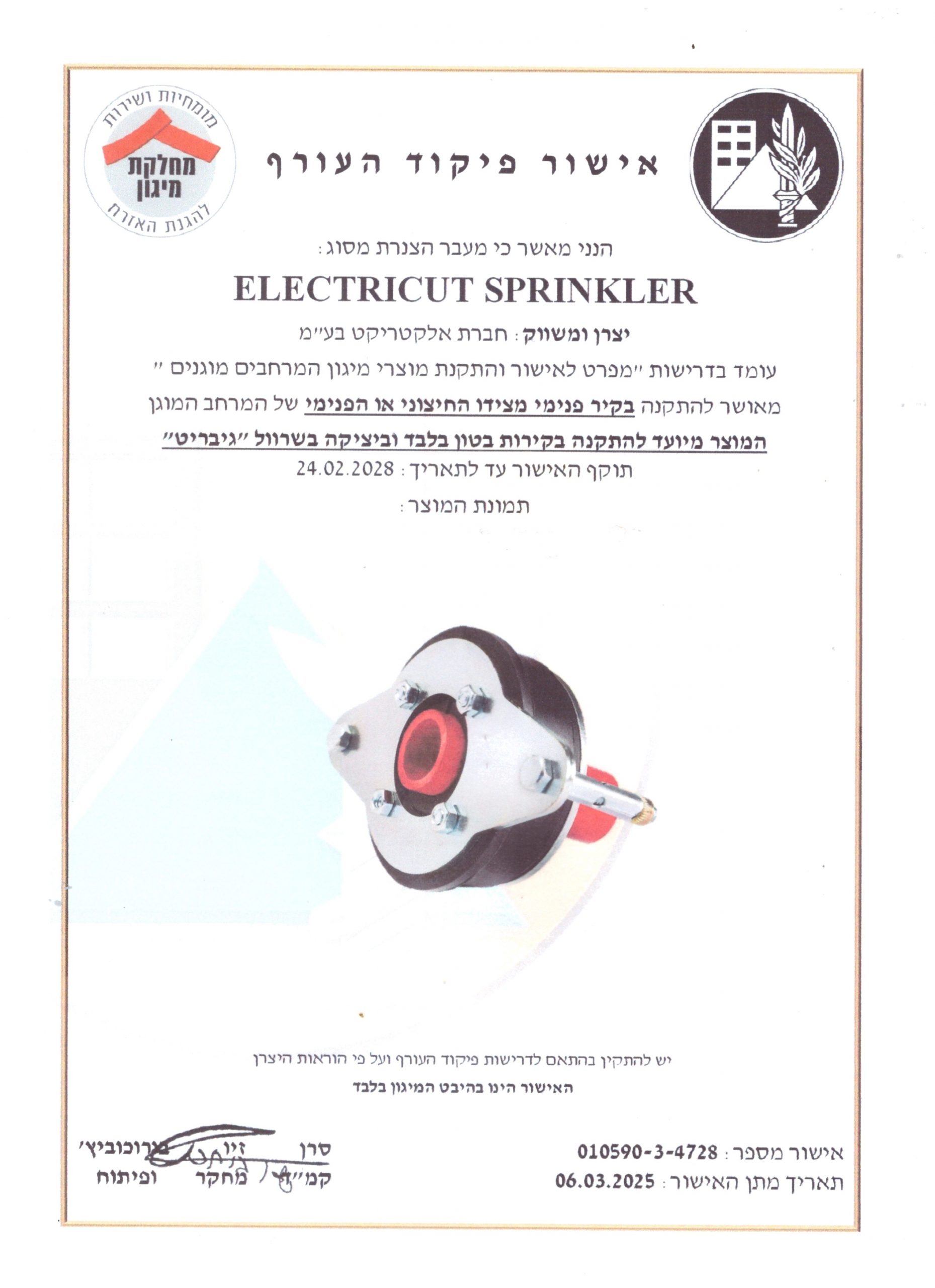 אישור פיקוד העורף