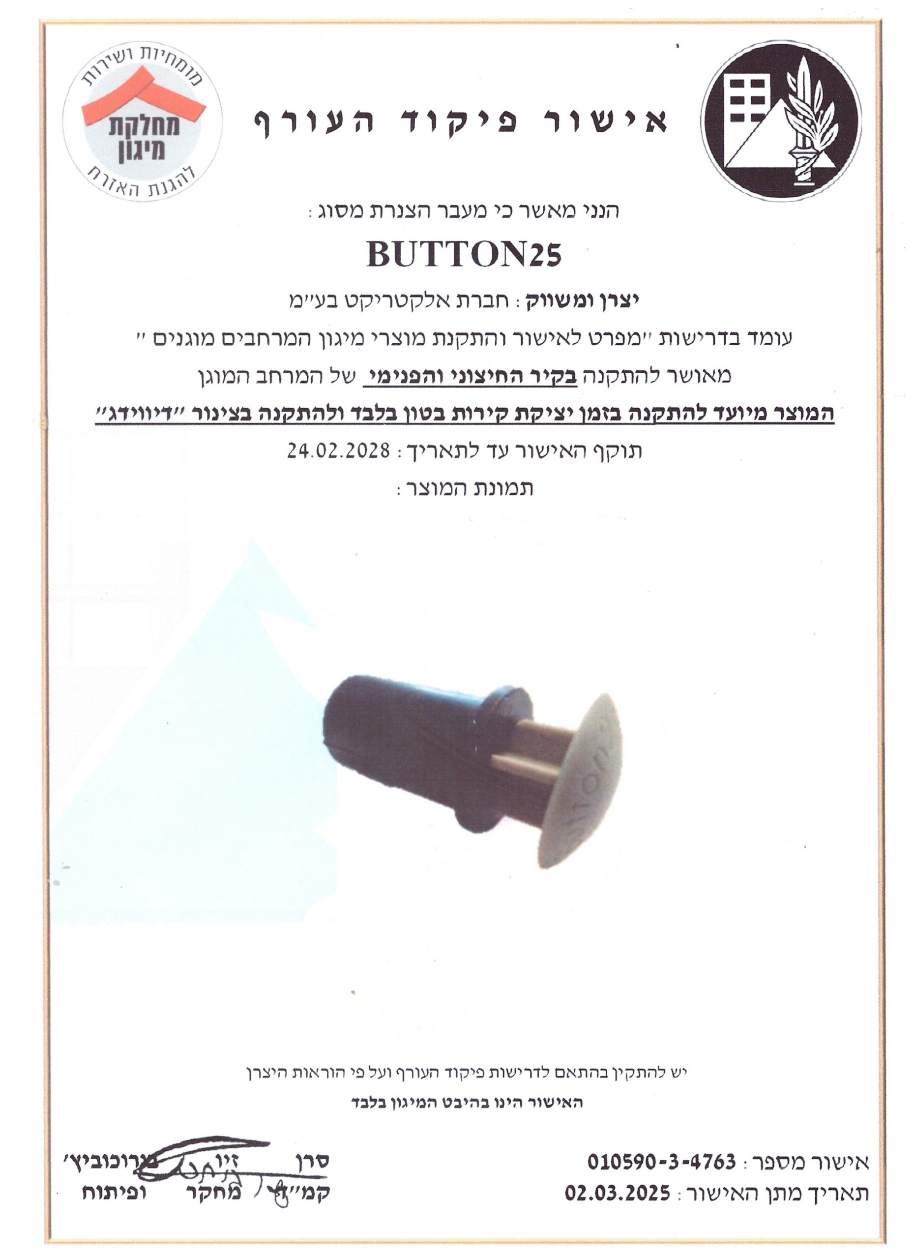 25 Button לצינור מרירון לממ"ד(כיפה אפורה)